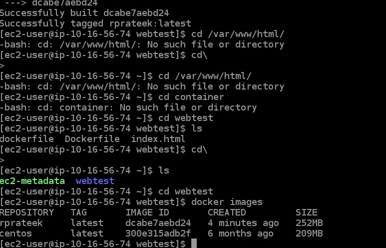 3. Edit the docker file .. install centos software latest, install httpd and copy index file to html folder and open port 80